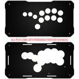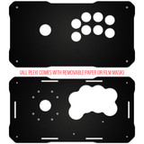 Much like the AllFightSticks family of steel enclosures, you can swap the top panel layout without having to purchase a new enclosure. You can choose the one of currently eight layouts that you desire for your kit. Because the design is made of acrylic, it is possible to add more layouts over time.